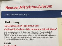 Der Schutz vor Cyberkriminalität wird immer wichtiger. Das war das Thema des Neusser Mittelstandsforums, das ich seit Jahren regelmäßig moderiere. Immer mehr Unternehmen werden Opfer von Angriffen. Und gerade kleine und mittlere Unternehmen, die meinen, sie seien doch gar nicht attraktiv für Kriminelle, erwischt es inzwischen besonders oft, weil gerade sie sich zu wenig schützen.